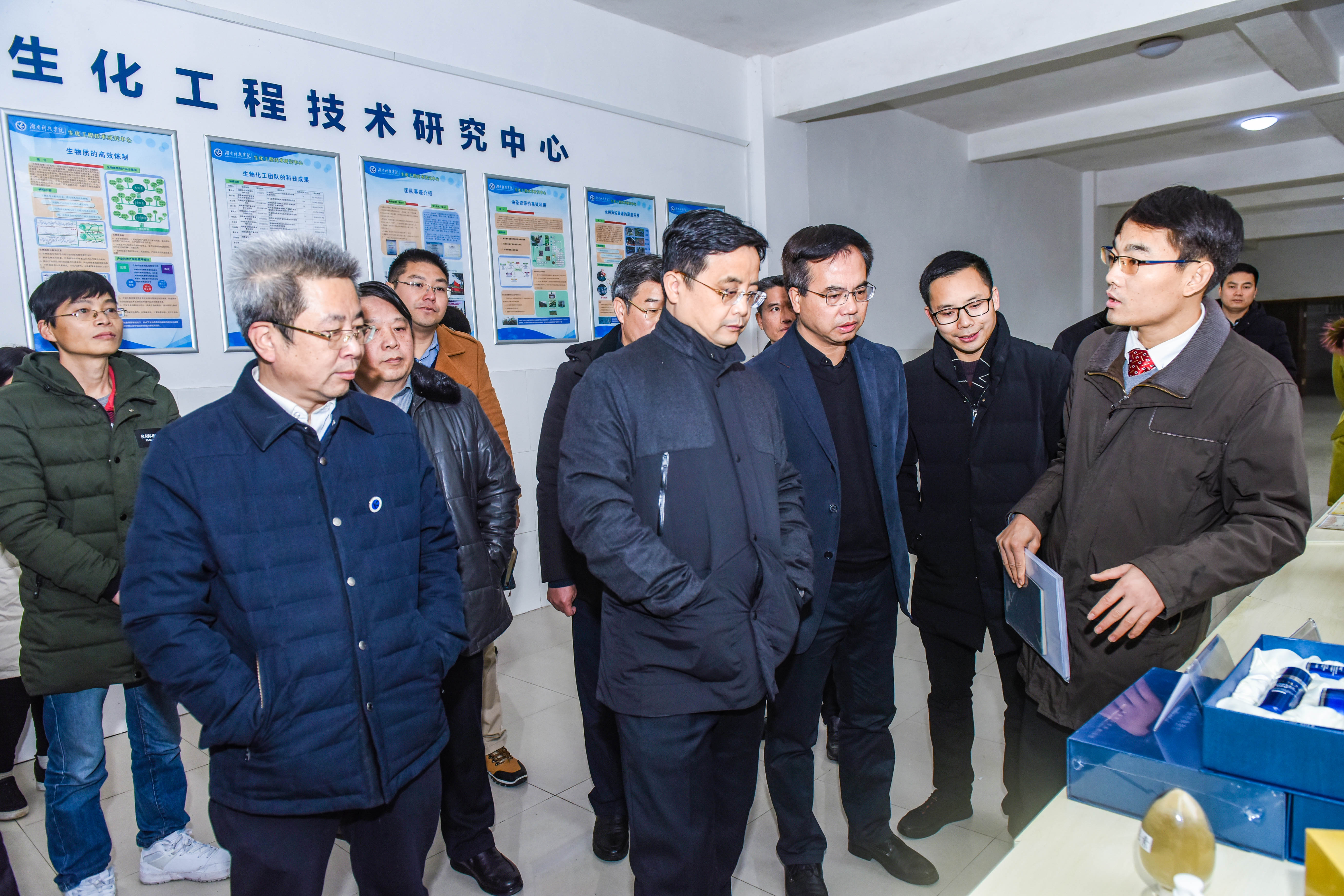 张贺文一行先后查看了生化工程技术研究中心及实验室,详细了解学校生化工程科研团队开展研究的情况,对近年来学校取得的科研成果表示肯定。