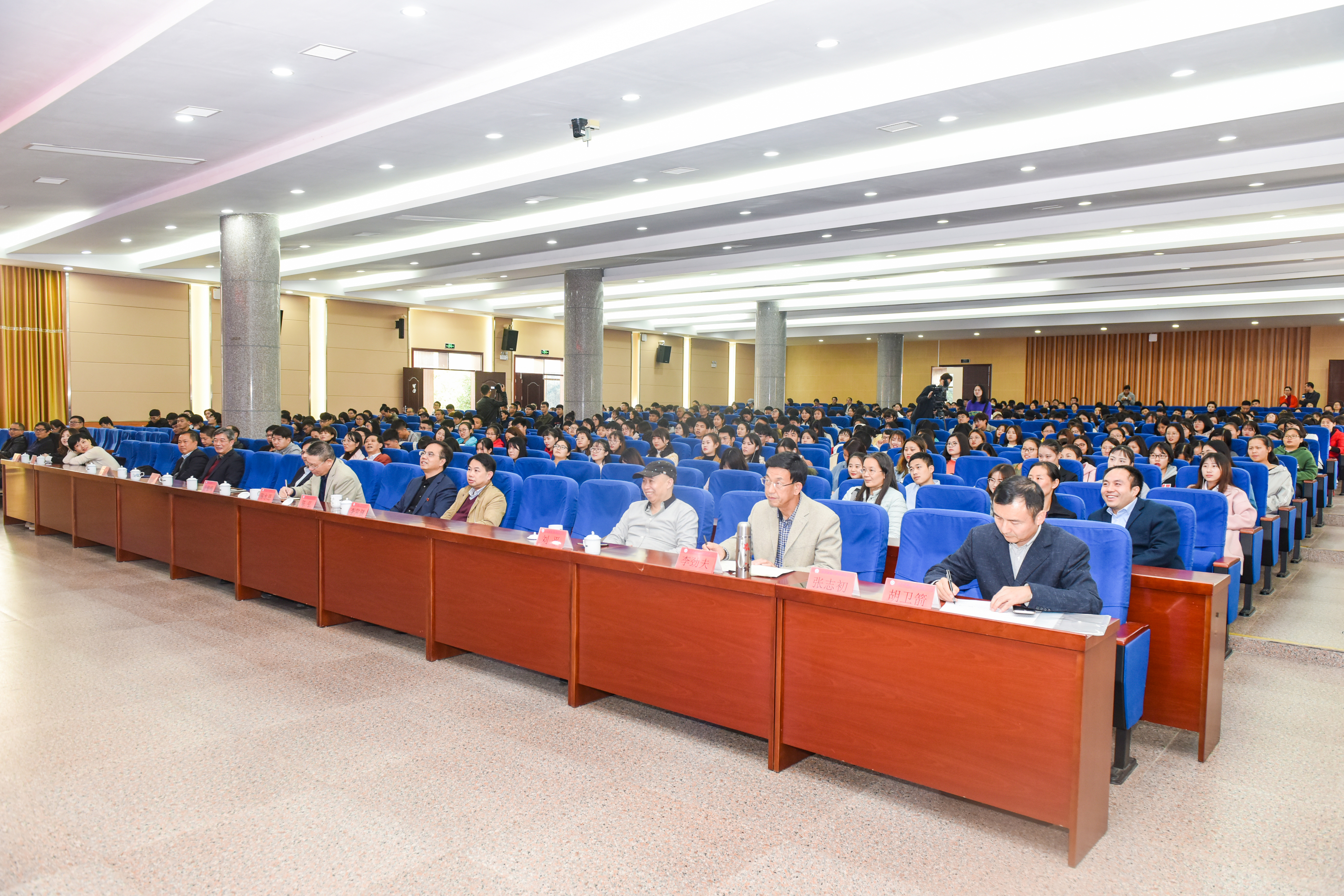本网讯 11月28日下午,第九届湖南省社会科学界学术年会“文化旅游与乡村治理”专场报告会在学校举行。报告会由省政府参事、省委党史研究室原主任、省委宣传部原副部长张志初和省民政厅原巡视员、省社会组织党工委副书记李劲夫主讲。省社科联党组成员、副主席胡卫箭主持报告会。校党委书记陈弘,副校长宋宏福、李常健,省、市社科联相关领导,永州市县区党校学员代表以及学校师生代表800余人参加。