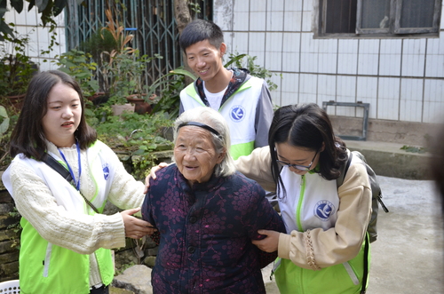 老人们上了年纪,听力不太好,志愿者们和他们聊天往往得提高音量,凑到耳根说话。“爷爷,您现在身体如何?”“奶奶,您有几个子女?您目前还有急需要解决的困难吗?……”从家庭生活、身体状况到邻里关系,志愿者们尽可能地了解老人们的基本情况,根据不同情况调整帮扶方案。老人们也爱敞开心扉地与志愿者们畅聊,尤其说到自己的青春岁月时,老人们滔滔不绝:“我年轻的时候家里所有的农活都是我包干,那时我身体好的很,从来没有生过病……”说到激动处老人像小孩子一样比划着,高涨的情绪让志愿者们也跟着开怀大笑起来。