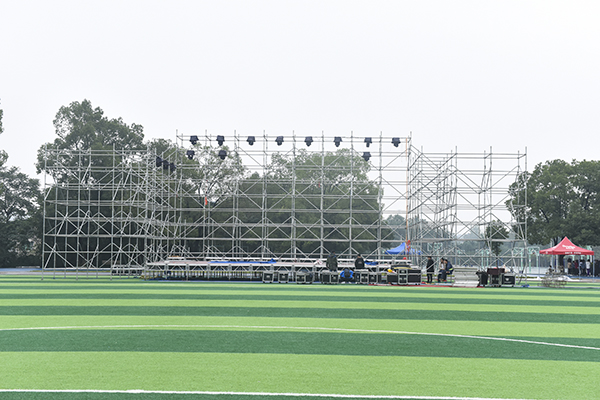 悬挂欢迎横幅、搭建展棚、翻新场所、疏导交通……校园里随处可见工作人员忙碌的身影。尽管阴雨连绵,但他们仍坚守在自己的岗位上,只为以最好的面貌迎接此次大赛。