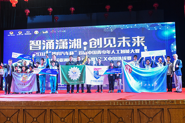 本网讯 经过三天紧张、激烈的角逐,10月21日下午,2018“猎豹汽车杯”首届中国青少年人工智能大赛暨第九届亚洲机器人锦标赛VEX中国选拔赛顺利完成各项预定赛程,圆满落幕,亚洲机器人联盟主席梁钟铭、湖南省永州市人民政府副秘书长汤荣石、学校副校长宋宏福等领导和嘉宾出席闭幕式。