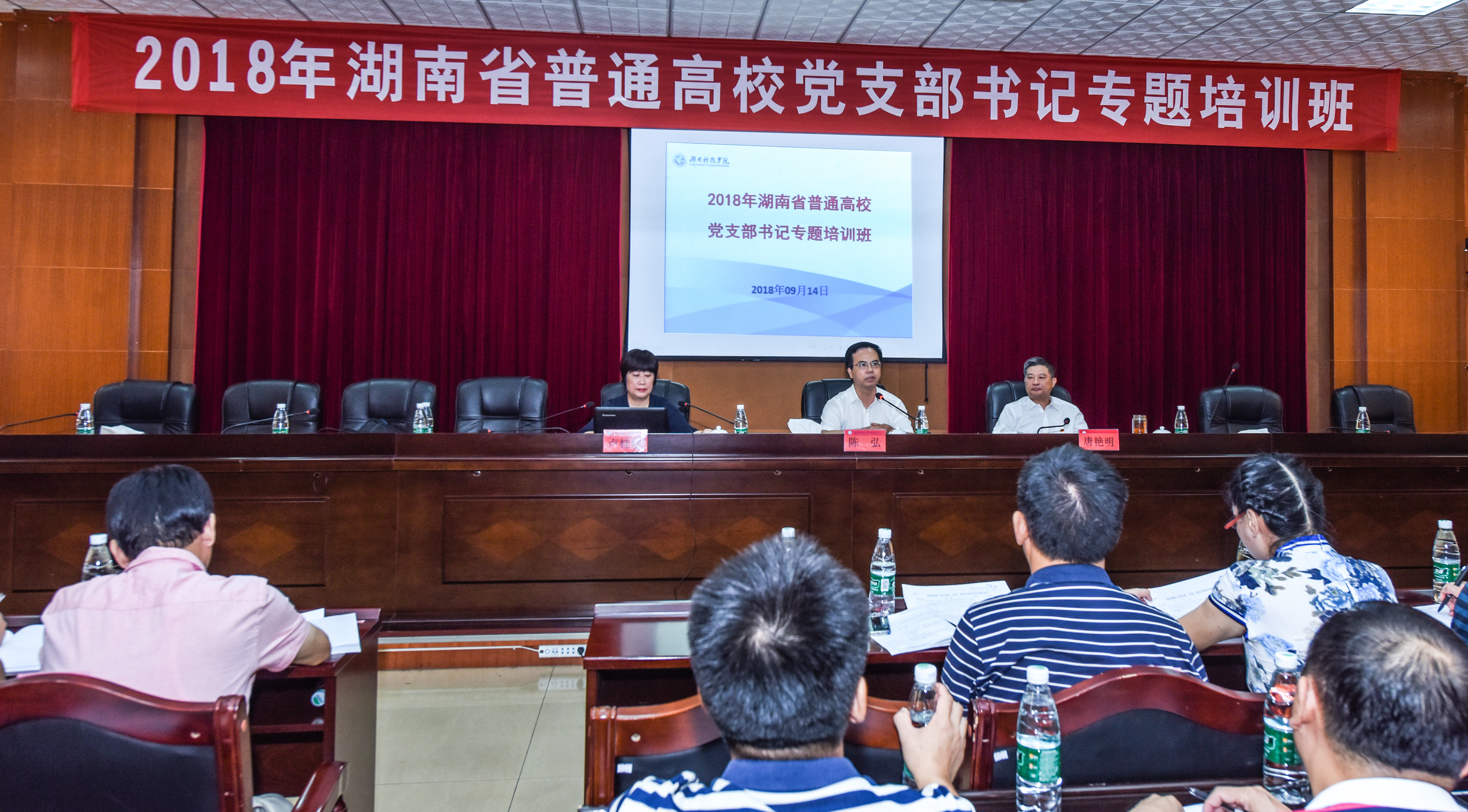 本网讯 9月14日,2018年湖南省普通高校党支部书记专题培训班在我校开班。我校各直属党组织书记、党支部书记以及来自永州职业技术学院、湖南九嶷职业技术学院的136名基层党支部书记参加培训。党委书记陈弘及省委教育工委组织部调研员刘素莹等同志出席,党委副书记唐艳明主持。