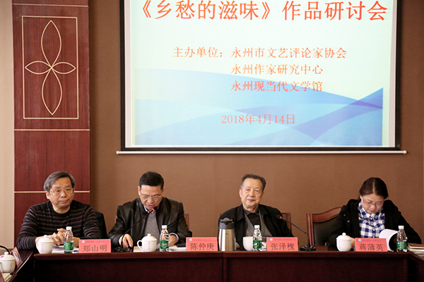 本网讯 4月14日上午,由永州市文艺评论家协会、永州市作家研究中心、永州现当代文学馆举办的郑山明作品《乡愁的滋味》研讨会在校举行,来自校内外的近30位专家、评论家、学者参加此次研讨会,共收到评论文章17篇。研讨会由中国作家协会会员、省舜文化研究会会长陈仲庚主持。