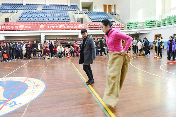 本网讯  3月8日下午,学校体育馆内笑声连连,欢呼阵阵,趣味横生,“三八”妇女节趣味运动会欢乐举行,吸引了来自全校各单位的300余名教职工参加,不少男教职工也纷纷热情参与助阵。