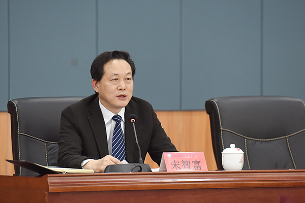 本网讯 12月6日下午,湖南省社科联党组书记、副主席宋智富以“深入学习贯彻党的十九大精神 奋力建设富饶美丽幸福新湖南”为主题,来校宣讲十九大精神。宣讲会由党委书记陈弘主持。党委副书记、校长曾宝成及在校领导宋宏福、彭立威、郑山明、李常健、吴小林、程智开,永州市社科联主席陈水恩等参加了这次宣讲会。