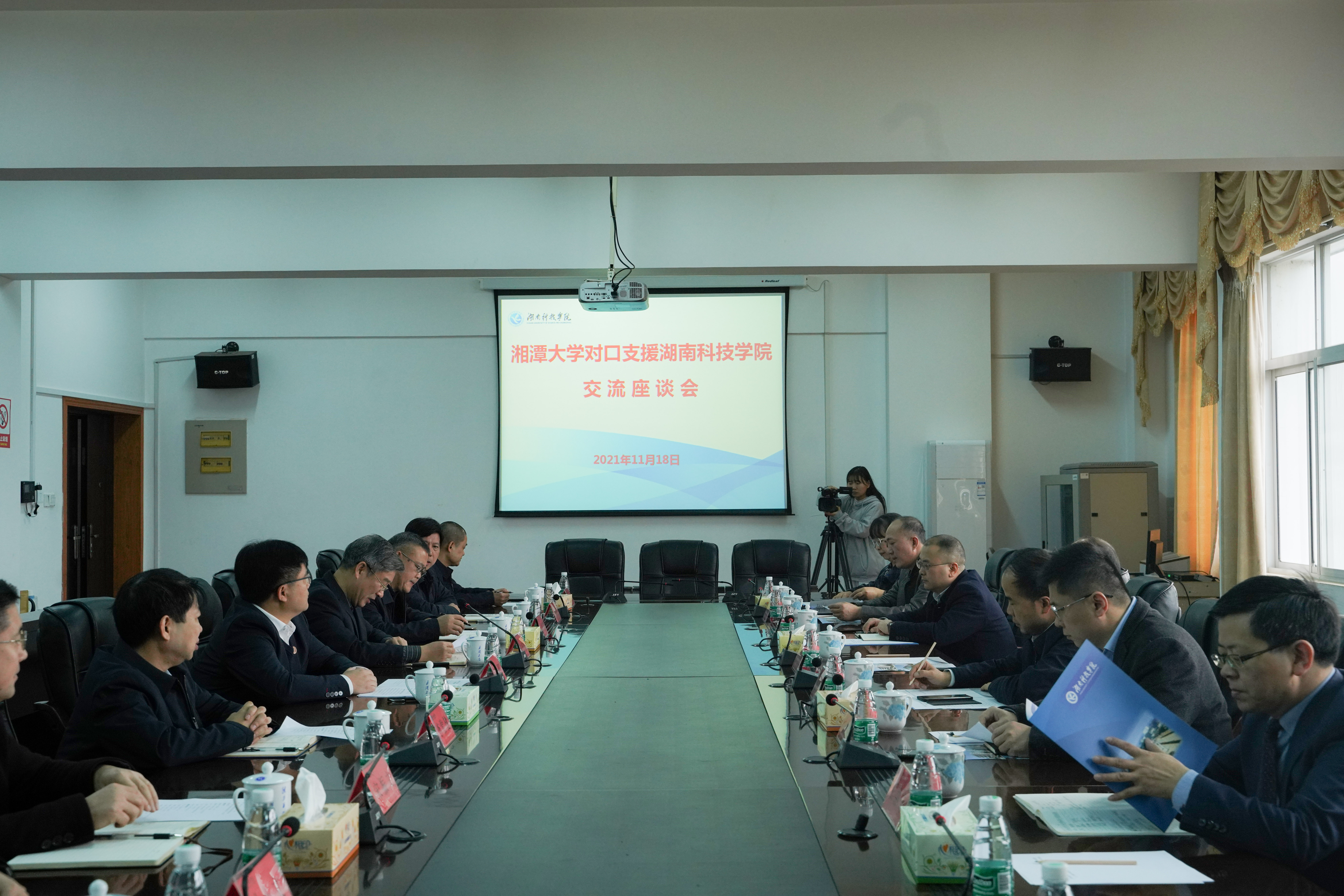 本网讯 为进一步加强两校间合作交流,切实落实《湘潭大学对口支援华体会官方版网站登录入口合作协议》,11月18日上午,湘潭大学校长李伯超、副校长盛明科带队来我校开展对口支援活动。我校校长李钢,党委副书记宋宏福,副校长李常健、何福林及有关职能部门负责人出席座谈会。会议由宋宏福主持。