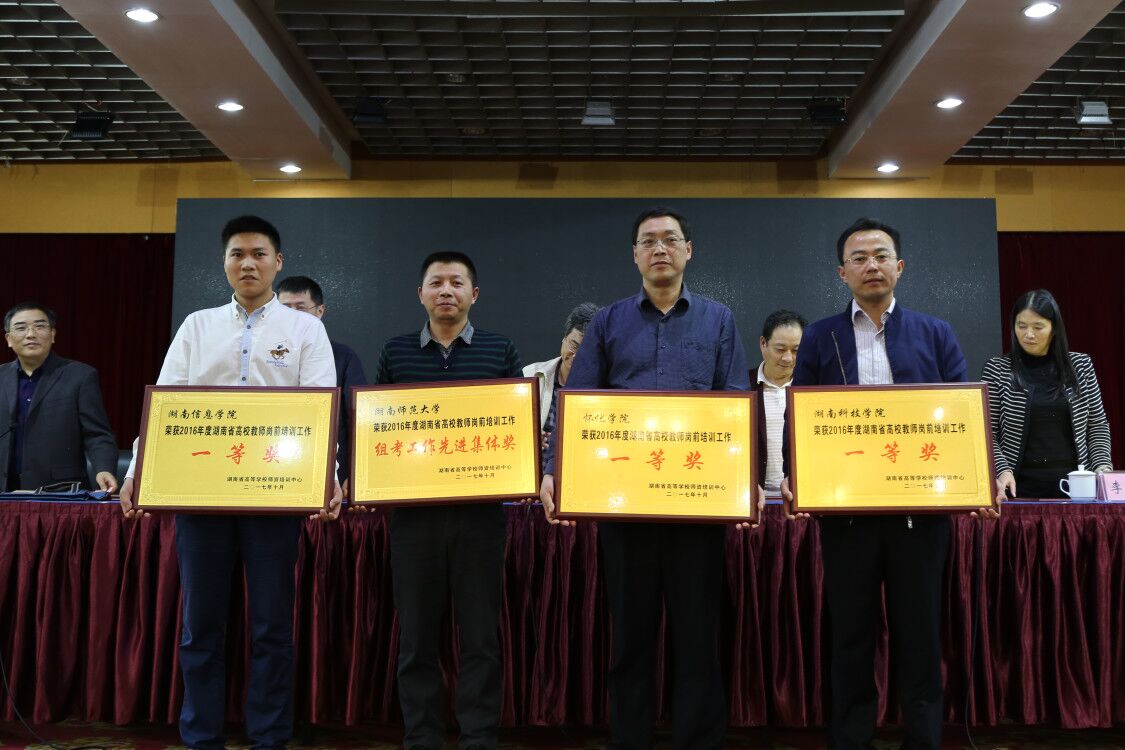 会议表彰了2016年度高校教师岗前培训先进集体、先进管理工作者和优秀学员。我校荣获2016年度湖南省高等学校教师岗前培训管理工作一等奖,这是我校2014年以来再次荣获一等奖。赵意成被评为先进管理工作者,李芳佳等七位老师被评为优秀学员。人事处副处长杨攀代表我校在表彰会上作典型发言(唯一典型发言)。