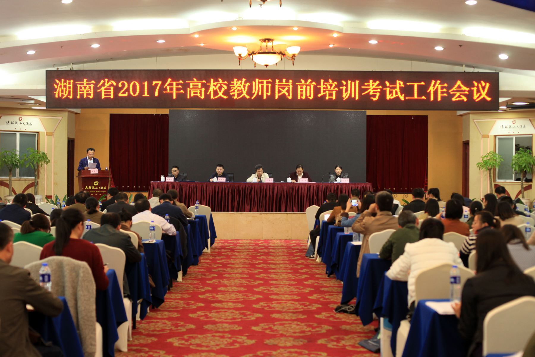 本网讯(人事处供稿)10月25日,湖南省2017年高校教师岗前培训考试工作会议在长沙召开。省教育厅教师工作与师范教育处处长邱德,湖南师范大学副校长、省高师培训中心主任王善平等领导出席。