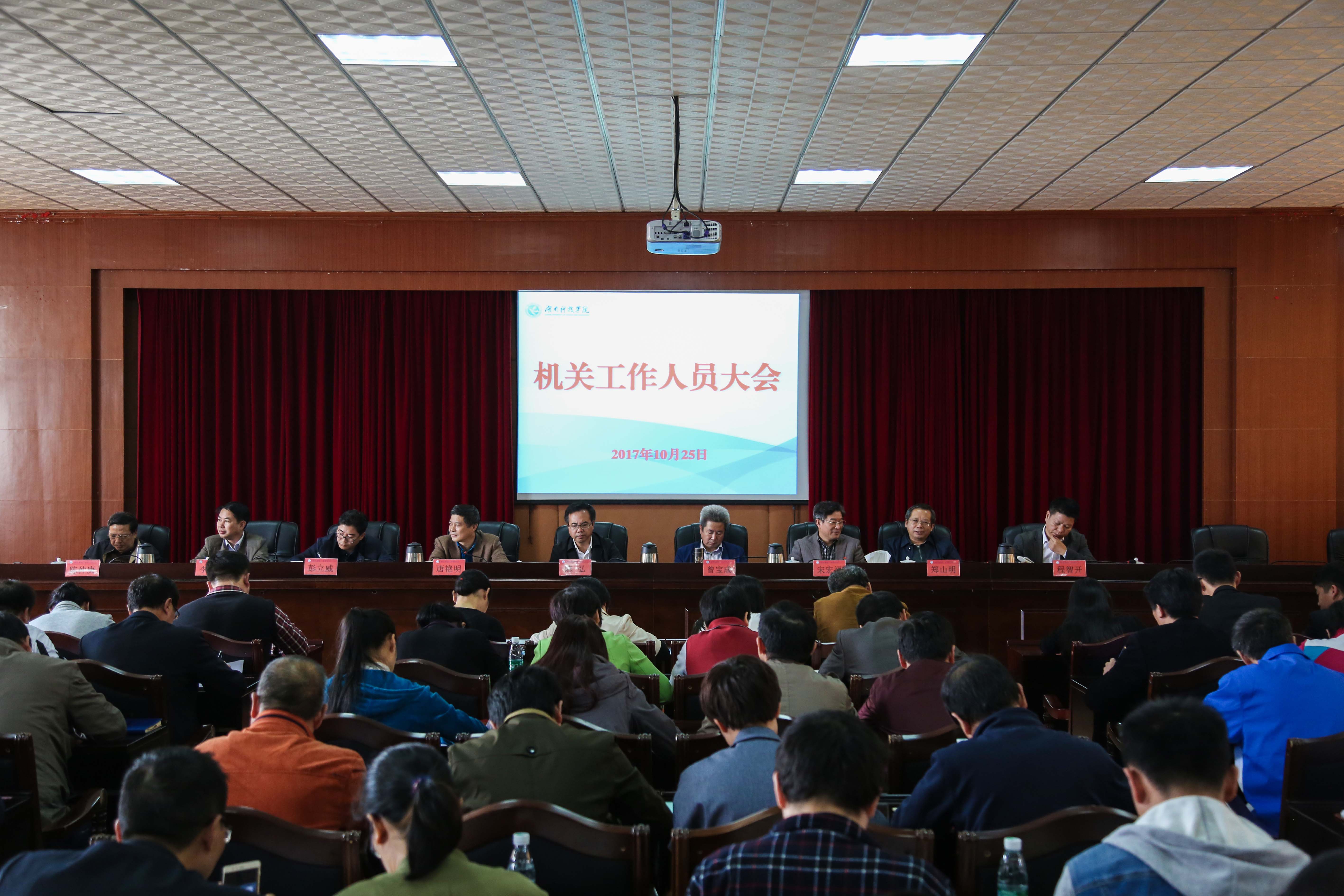 本网讯 党的十九大刚刚胜利闭幕,为深入推进全面从严治党,进一步加强工作作风建设,强化全体机关工作人员纪律观念,提高工作效能,10月25日下午,学校举行机关工作人员大会。党委书记陈弘,校党委副书记、校长曾宝成及全体在家校领导、全体机关工作人员参加会议。会议由党委副书记唐艳明主持。