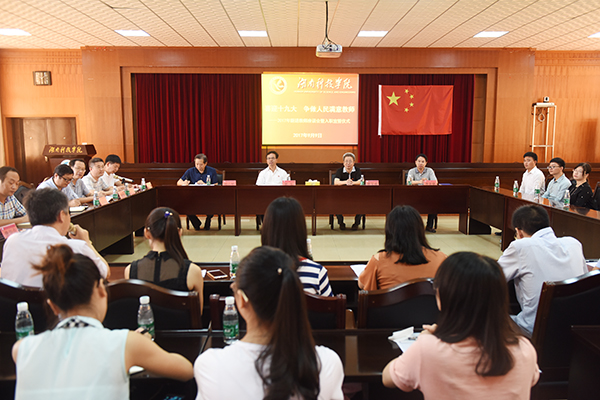 本网讯 “我志愿成为光荣的华体会官方版网站登录入口教师,我庄严宣誓:忠诚人民的教育事业,贯彻党的教育方针……”9月9日上午,学校举行“喜迎十九大争做人民满意教师”主题座谈会,53名新进教师面对国旗庄严宣誓入职。党委书记陈弘以“地因人始重 校以师而名”寄语全体新进教师,努力成长为一名有理想信念,对教育有深刻理解的好老师。校长曾宝成、副校长郑山明、李常健出席。