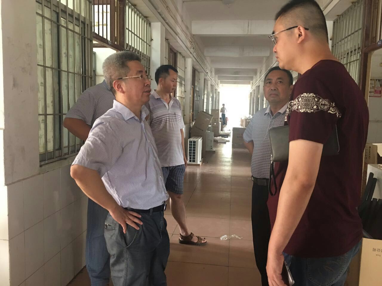 本网讯  7月19日上午,校长、暑期重点工程项目总指挥长曾宝成在后勤服务总公司总经理李年终和三和实业有限公司何建明总经理的陪同下,冒着酷暑前往桃园、松园学生宿舍空调安装项目施工现场查看工程进展情况并对坚守在施工工地一线的职工表示慰问。