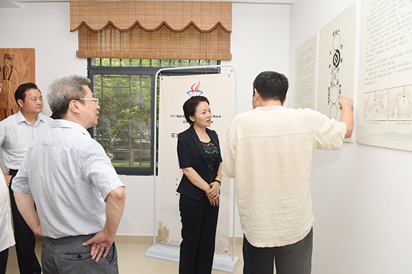走进国学院,李晖饶有兴致地就濂溪书院室内悬挂的太极图与张京华教授进行了交流。看到同学们正在认真制作拓片,李晖满怀兴趣地了解了拓片的制作方法和拓片文字内容。考察中,李晖还高兴地听取了张京华教授对国学院的情况汇报,并频频点头表示赞赏。随后,李晖来到小成堂看望正在学习古琴演奏的国学专业的同学们。“大家在这里学习感觉怎么样?”当听到同学们对于专业洋溢着喜爱之情时,李晖说,腹有诗书气自华,希望大家学习好、传承好传统文化,提高修养、丰富内涵。当听到同学们已经发表若干关于永州地方文化研究的学术研究论文时,李晖给予了高度赞扬,并希望通过大家的进一步研究与保护,推动永州地方优秀传统文化的继承和创新。