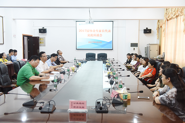 本网讯 6月8日下午,我校在行政办公楼六楼会议室召开2017届毕业生家长代表座谈会。校党委书记陈弘、纪委书记彭立威与2017届毕业生家长代表亲切座谈。座谈会由学工部部长唐华山主持。