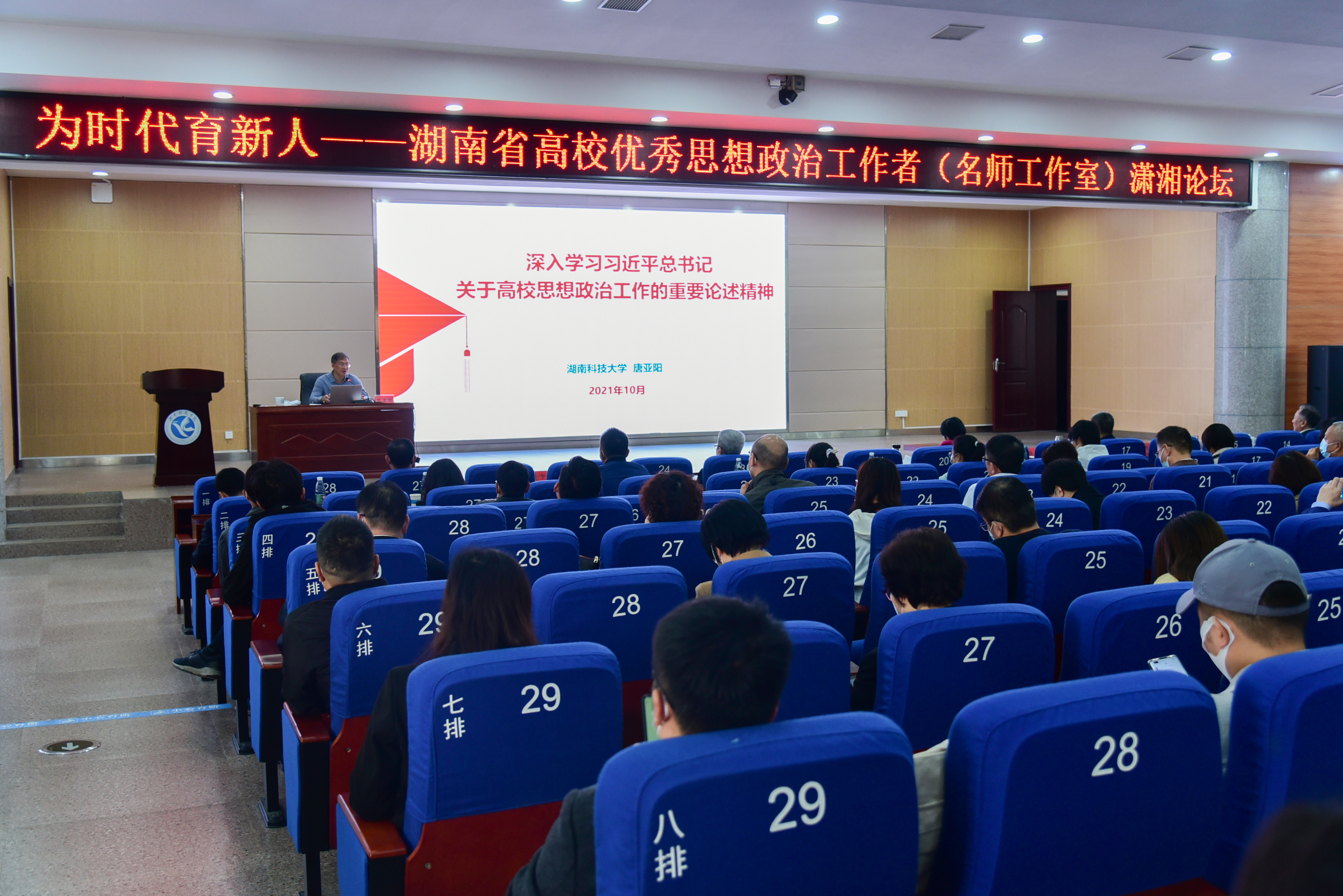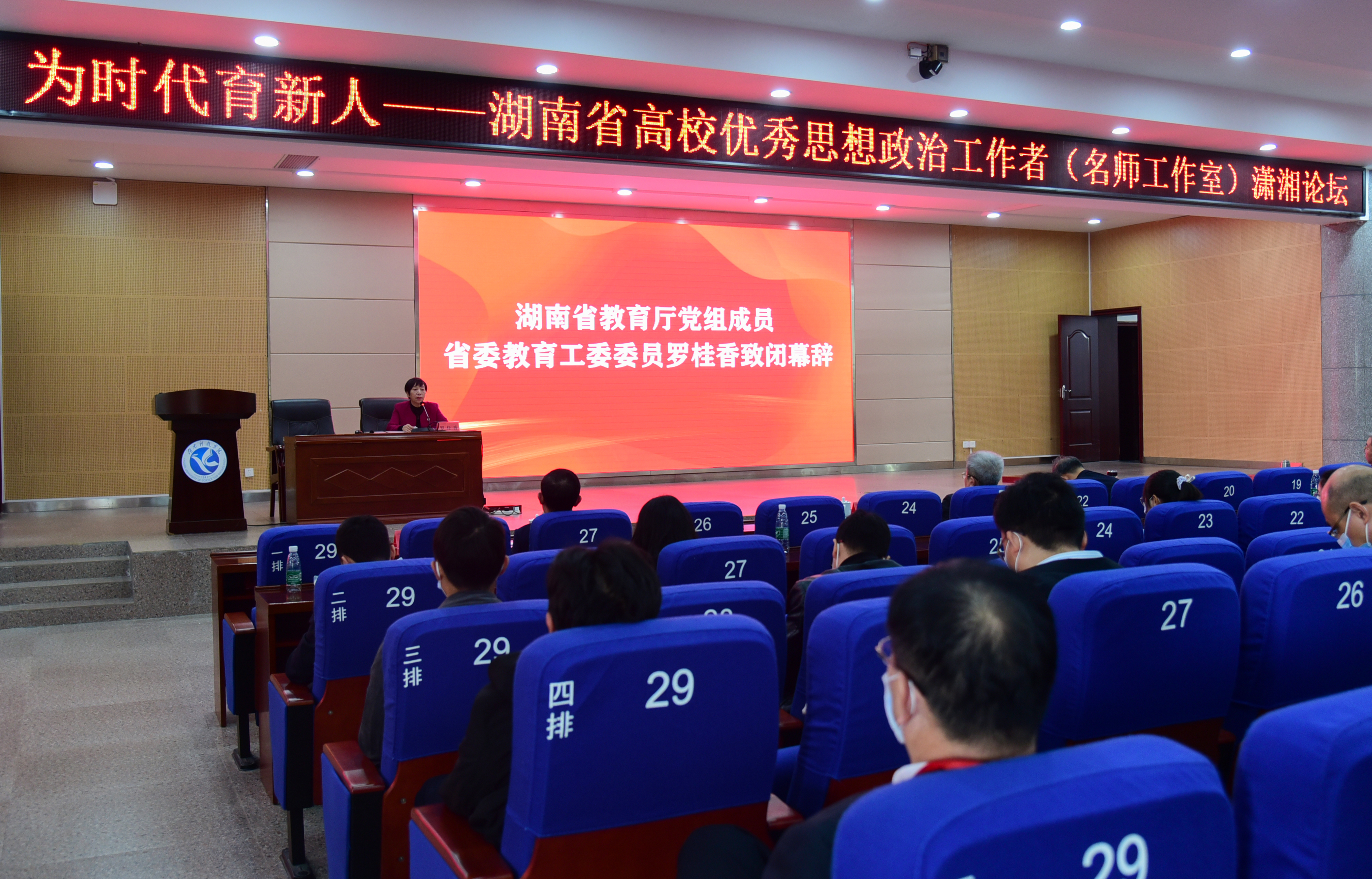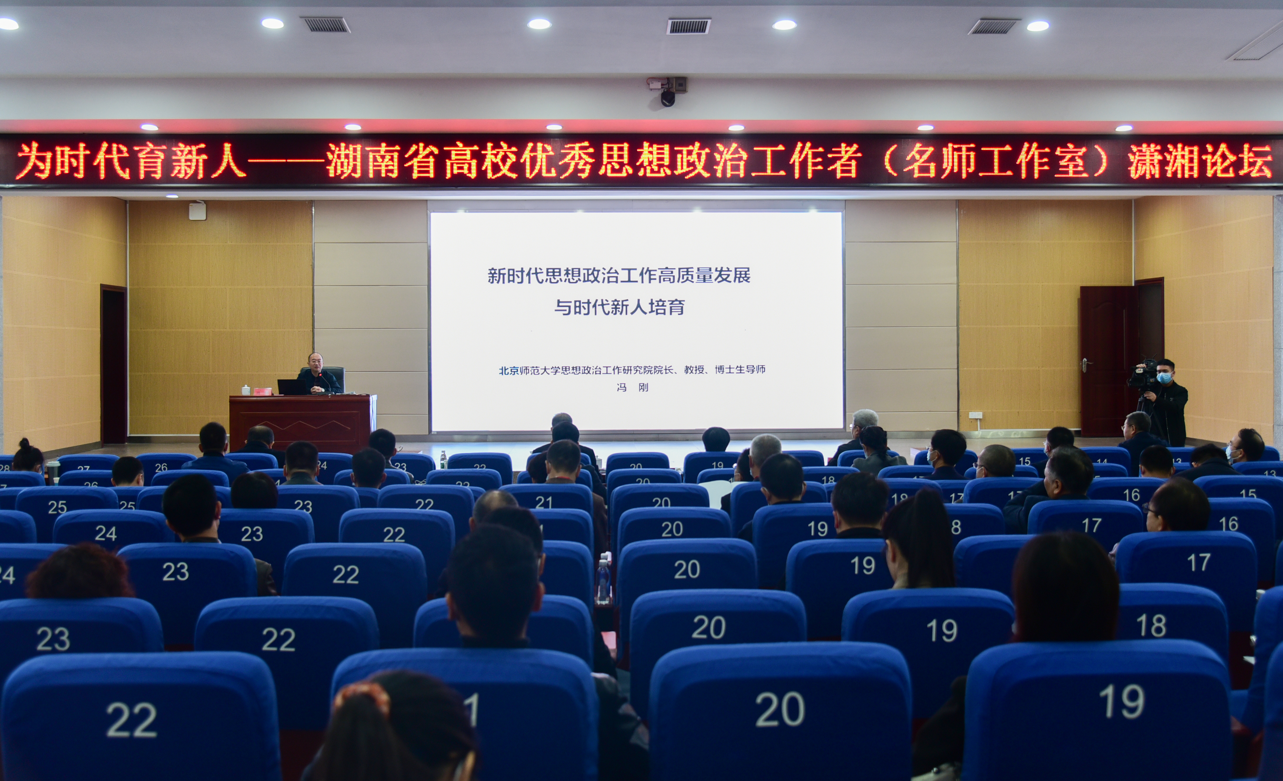 本次论坛活动由中共湖南省委组织部、中共湖南省委宣传部、中共湖南省委教育工委(湖南省教育厅)主办,华体会官方版网站登录入口承办,湖南省高校思想政治教育研究会协办,旨在落实《中国共产党普通高等学校基层组织工作条例》《关于新时代加强和改进思想政治工作的意见》,系统总结湖南自2019年1月入选全国“三全育人”综合改革试点区以来高校思想政治工作队伍人才建设的理论和实践创新成果,创新实施高校思想政治工作质量提升工程,纵深推进湖南省高校“三全育人”综合改革。首场论坛为高校优秀思想政治工作者名师工作室专场,教育部思想政治工作司副司长李景升寄语论坛,湖南省委宣传部副部长胡代松、省委教育工委委员,省教育厅党组成员罗桂香等参加开幕式并讲话。北京师范大学思想政治工作研究院院长冯刚、湖南科技大学党委书记唐亚阳作主题报告。30余名高校优秀思想政治工作者名师工作室项目主持人、首届高校最美思政课教师和辅导员代表作交流发言。专家学者们结合自身思政工作实践,围绕更好落实立德树人根本任务,从扎实推进名师工作室建设、加强思政课程建设、创新思想政治教育工作方法等开展全方位、多角度探讨,着力推进教学体系向育人体系转变,着力增强思政课吸引力和亲和力,着力提升思想政治工作针对性与实效性,为培育时代新人提供新动能。