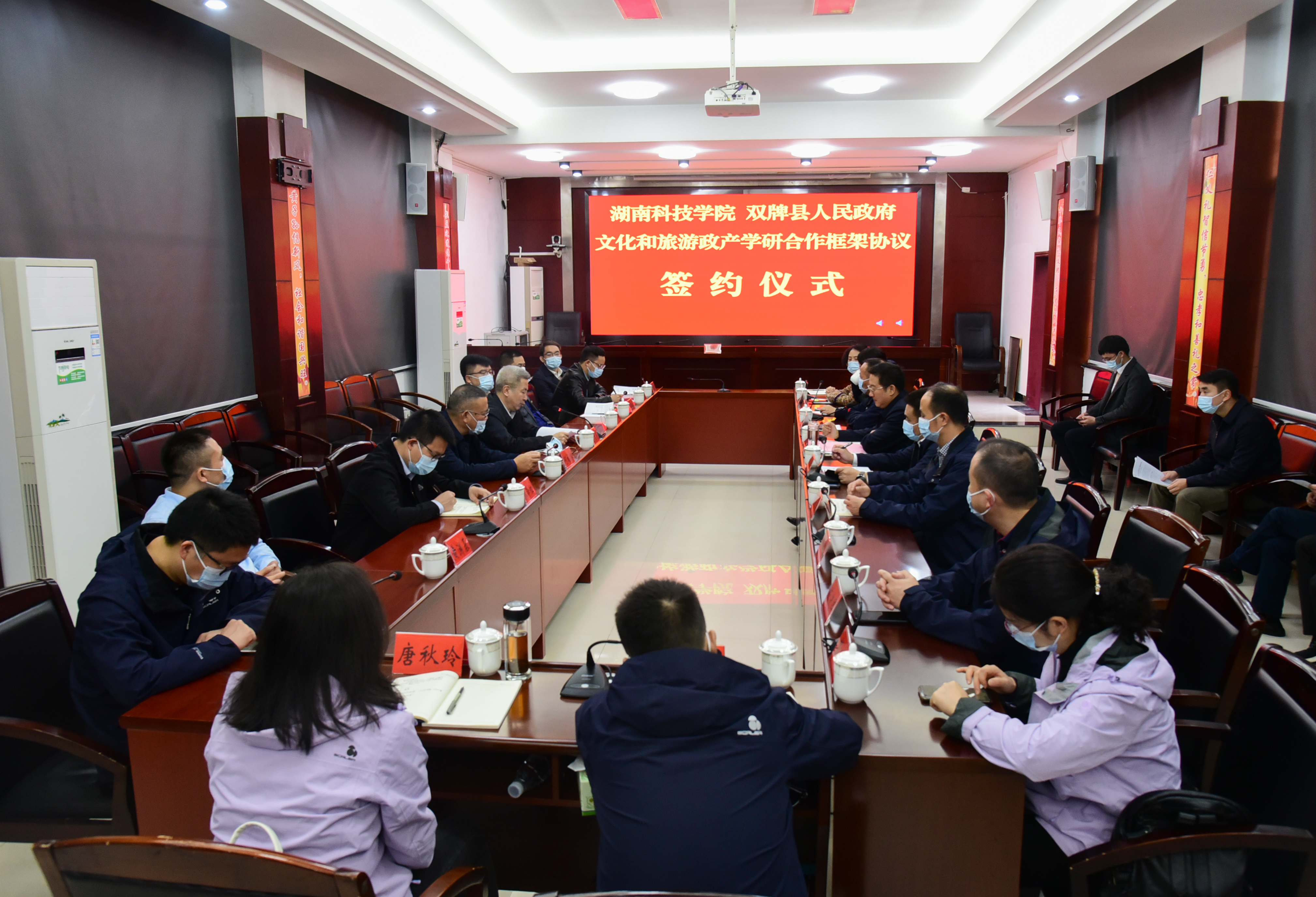 本网讯 11月2日上午,学校与双牌县人民政府签约旅游合作框架协议。双牌县委书记张跃斌,县委副书记、县长蔡富强,县领导何彩玲、周明冬、石婧,学校党委书记曾宝成,党委副书记、校长李钢,副校长何福林出席签约仪式。