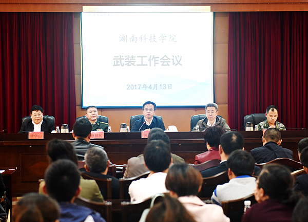 学工部部长、武装部部长唐华山以“真抓实干乘势而上再创我校武装工作新局面”为题汇报了学校2016年武装工作情况及取得的成绩,并介绍了我校2017年武装工作安排,他从国防教育、兵役登记、征兵、军训、双拥共建、民兵整组等工作进行了部署。