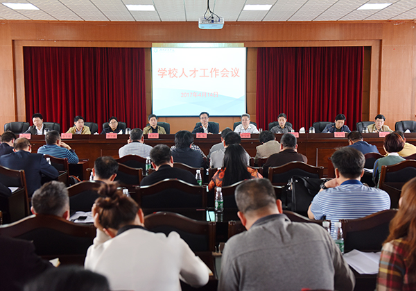 本网讯 为切实推进我校高水平应用型大学建设,4月14日,学校召开人才工作会议,校党委书记陈弘在讲话中强调,人才工作是学校事业发展最重要的工作,要举全校之力来推动人才队伍建设和师资队伍建设,切实推进学校人才工作见实效、见真效。校长曾宝成作题为《全校动员 多方发力 努力建设高水平师资队伍》的工作报告。校领导唐艳明、宋宏福、彭立威、郑山明、李常健、吴小林、程智开出席。会议由副校长郑山明主持。