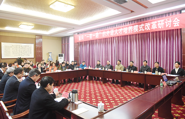 本网讯 3月25日上午,面向“一带一路”的外语人才培养模式改革研讨会在我校举行。校党委书记陈弘、校长曾宝成,副校长宋宏福、郑山明、李常健出席,解放军外国语学院教授、博士一行12人,学校科技处、人事处领导,外国语学院部分老师参加了会议。