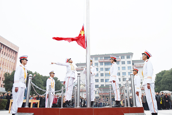 陈弘表示,举行新年升旗仪式,一是希望大家以奋发向上的精神状态迎接新的一年,响应习总书记号召,“撸起袖子加油干,走好新的长征路”;二是任何时候我们的血管里面必须流淌着爱国热血,通过集体升旗仪式来激发大家的自豪感、幸福感和责任感,通过持之以恒地奋斗来改变国家面貌和自己命运。