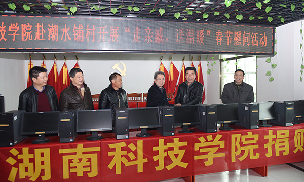 本网讯 1月15日,永州市新田县龙泉镇潮水铺村欢声笑语、热热闹闹。华体会官方版网站登录入口校长曾宝成率队深入学校扶贫村开展 “走亲戚 送温暖”活动,为村民送上春联百余幅,走访慰问贫困村民、五保户和村干部100余人次,发放节日慰问金27200元,并捐赠了8台台式电脑。