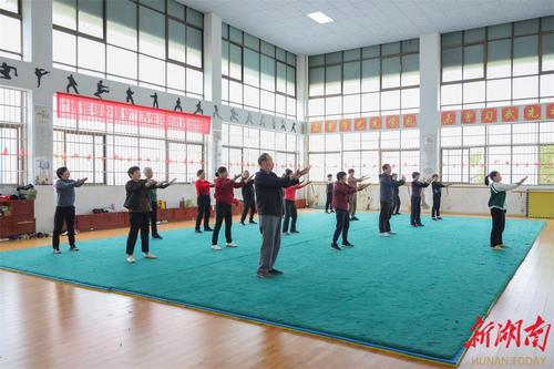 湖南日报·新湖南客户端4月1日讯(通讯员 余佳佳 李雨阳)“左脚开步,重心左移,两腕侧起,腕与肩齐平……”日前,在华体会官方版网站登录入口体育学院训练馆武术室内,伴随着悠扬悦耳的伴奏音乐,老人们正跟随着老师认真学习通络操,队伍整齐而有序,动作舒缓而优美。