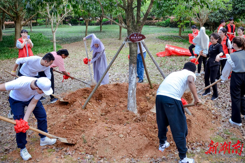 大家在舜帝陵公园植下了象征国际友谊的“友谊常青树”