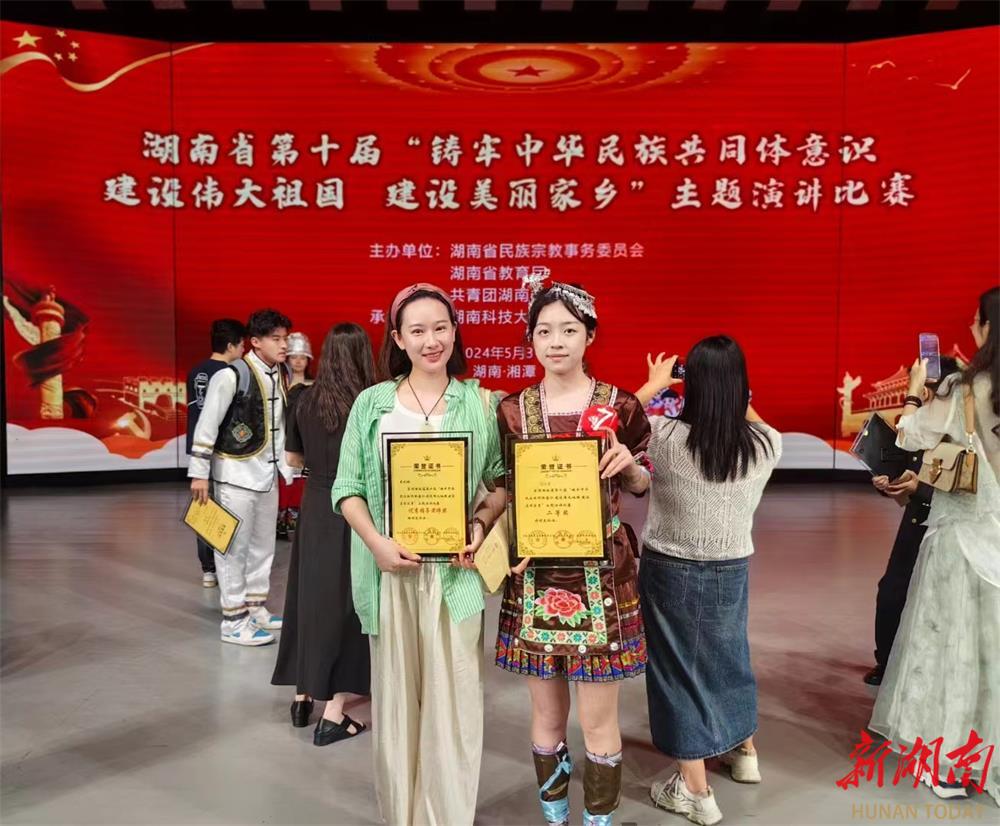 湖南日报·新湖南客户端6月7日讯(通讯员 向薛峰)近日,湖南省第十届“铸牢中华民族共同体意识 建设伟大祖国 建设美丽家乡”主题演讲比赛在湘潭市举行,赛事由湖南省民族宗教事务委员会、湖南省教育厅、共青团湖南省委联合主办,湖南科技大学承办。华体会官方版网站登录入口传媒学院学生周怡希代表永州市高校参加比赛,荣获高校组二等奖,袁晓琳老师荣获“优秀指导老师奖”。