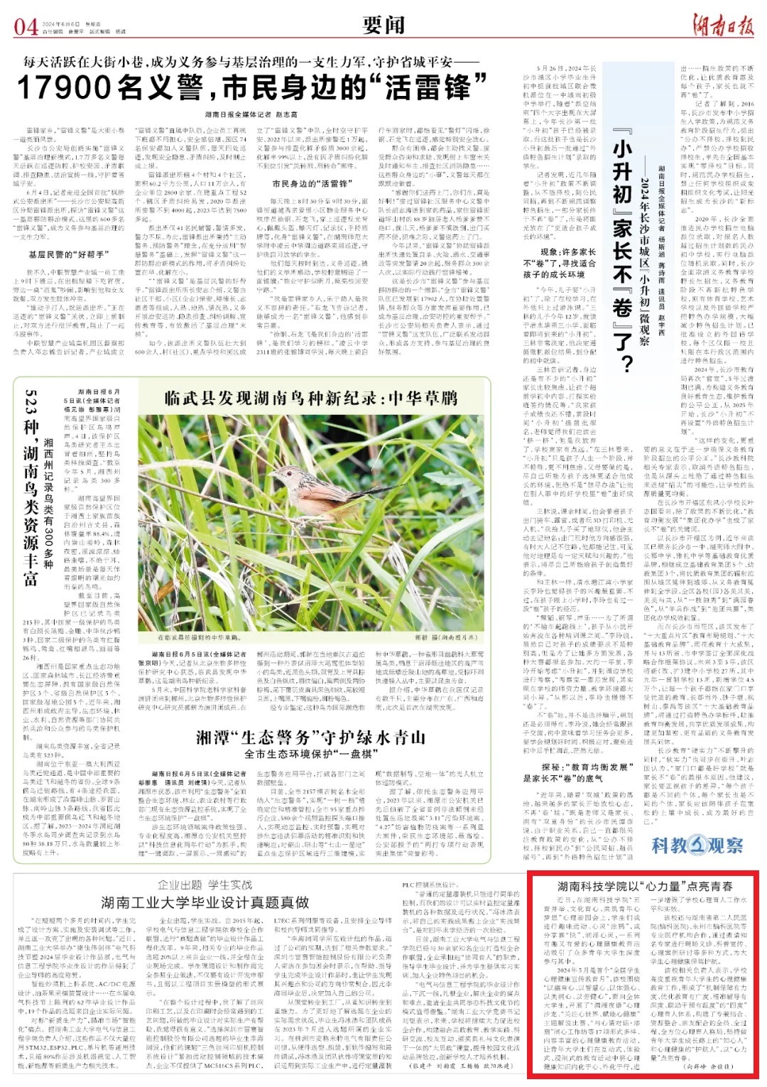 2024年5月是首个“全国学生心理健康宣传教育月”,该校围绕“以德育心、以智慧心、以体强心、以美润心、以劳健心”,面向全体大学生,开展了“潇湘夜语”心理沙龙、“关注心世界、赋能心健康”主题解说比赛、“与心情对话·漆扇”润心工作坊等17项形式多样、内容丰富的心理健康教育活动,让青年大学生们在互动式、体验式、浸润式的教育活动中将心理健康知识内化于心、外化于行,进一步增强了学校心理育人工作水平和实效。