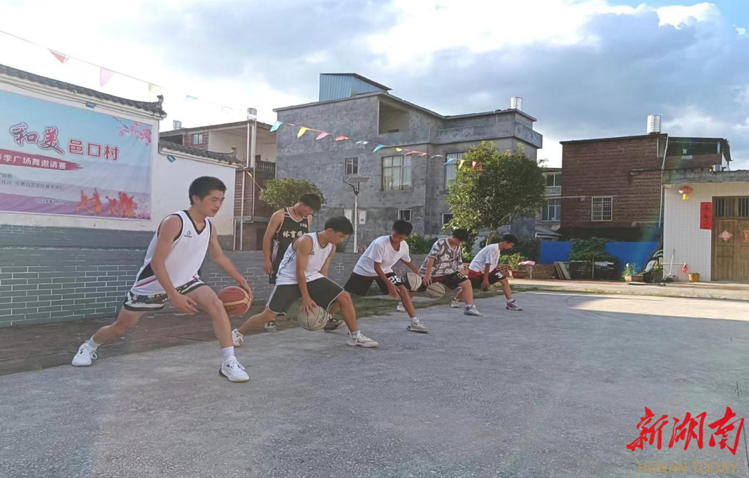 湖南日报·新湖南客户端7月8日讯(通讯员 周文 蒋丰年)7月7日,江永县桃川镇邑口村,一群孩子活跃在村篮球场上,一遍遍练习着篮球基本功,教练在身边进行指导,带领他们开展暑期篮球运动。