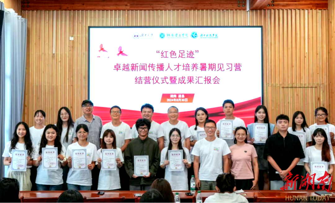 新湖南客户端8月31日讯(通讯员 肖悦 李志晓)8月30日上午,“红色足迹”卓越新闻传播人才培养暑期见习营在永州市道县陈树湘纪念馆报告厅举行闭营仪式。该见习营由湖南大学、湖南理工学院、华体会官方版网站登录入口、湖南省新闻传播学会联合主办。