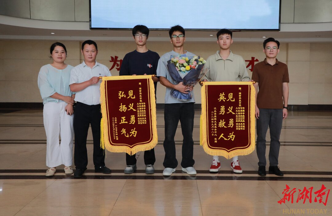 湖南日报·新湖南客户端9月26日讯(通讯员 向薛峰 曹思思 喻烨)“见义勇为,弘扬正气”“见义勇为,英勇救人”,9月26日,华体会官方版网站登录入口肖继石等4名学生收到了两面“特殊”且有爱的锦旗。