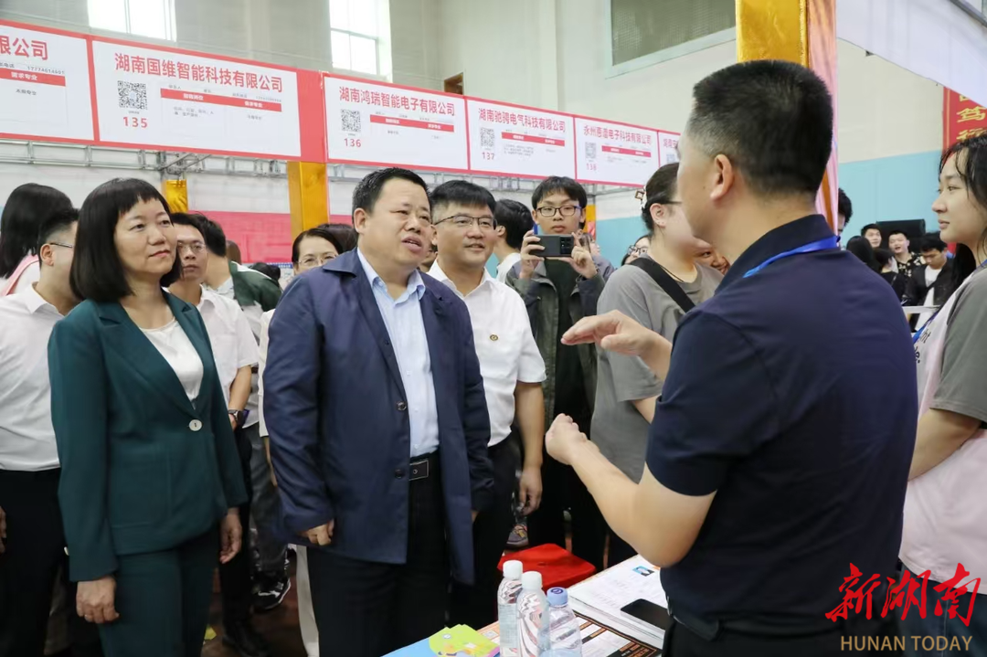 华体会官方版网站登录入口副校长郑银芳,永州市人力资源和社会保障局党组书记、局长骆方方,永州市教育局党组成员、副局长黄敏出席双选会。