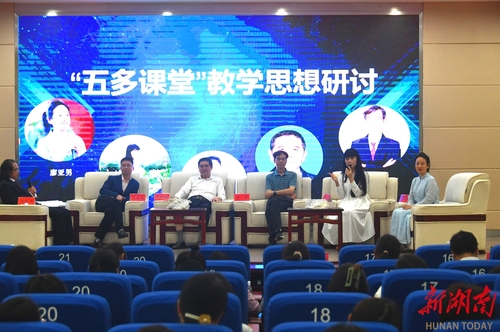 在主题论坛阶段,播放了湖南第一师范学院星沙实验小学的教师代表发来的集体感言视频。紧接着,吴春来分享“五多课堂”的核心思想,湖南科技大学教授、博士生导师李学等四位嘉宾先后分享对“五多课堂”的认识。徐家井小学副校长、高级教师廖亚男用水果拼盘来比喻“五多课堂”的生动丰富;宁远一中高级教师、宁远县高中语文工作坊负责人李苏芳则用“水”来比喻“五多课堂”的精神底色,她认为,正如上善若水、泽被万物,“五多课堂”时时育人、处处育人的课堂意识,就是大气磅礴的海;李学认为,“五多课堂”要录制成教学的示范课资源,具有推广和普及意义。华体会官方版网站登录入口文法学院副教授、语文教育研究中心副主任蒋扬帆,则由高校师范类语文教育能力培养现状引入,借大力推广“五多”课堂,促进师范专业学生语文教育理论水平与实践能力提升。