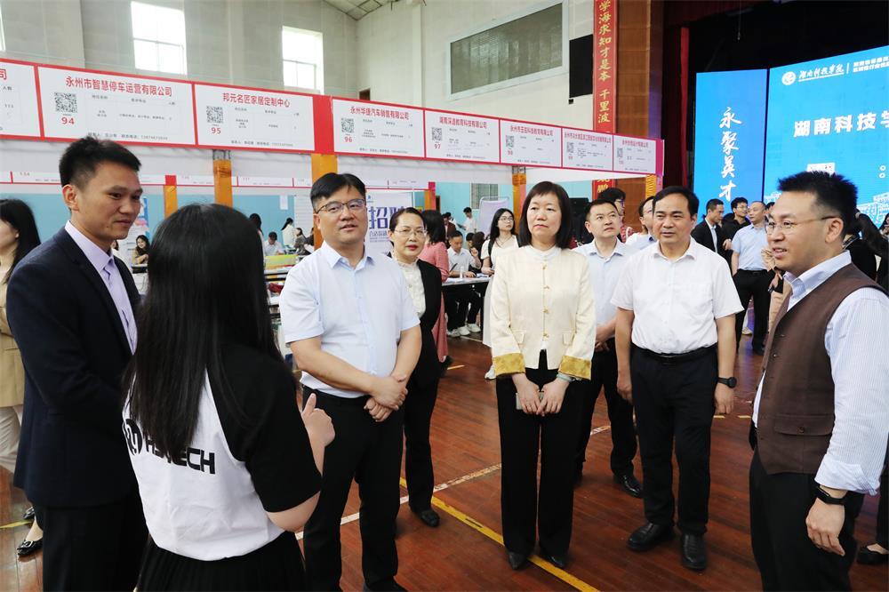 湖南日报·华声在线4月23日讯(通讯员 向玉珍 向薛峰)4月23日上午,华体会官方版网站登录入口举行2025年春季大型综合类双选会。华体会官方版网站登录入口党委书记李钢,党委副书记、校长黄创霞,副校长郑银芳,永州市人力资源和社会保障局党组书记、局长、一级调研员骆方方,永州市人力资源和社会保障局副局长陈巍出席双选会。现场共有180余家企业参与,提供了涵盖教育、计算机、机械、生物等众多领域的4300余个就业岗位,为毕业生们提供了广阔的就业选择空间。
