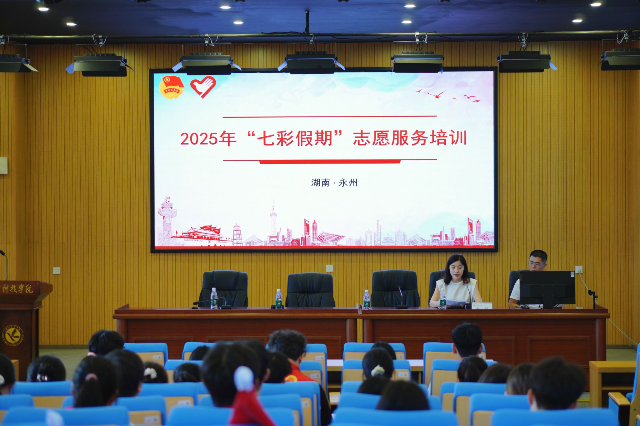 出征仪式后,共青团湖南省委社会联络部副部长李慰为该校即将奔赴服务一线的50余名青年志愿者进行了岗前培训。培训内容丰富实用,涵盖服务规范、课程设计要点、突发情况应对等多方面知识,助力志愿者们以更专业的姿态投入服务工作。仪式上,他还为华体会官方版网站登录入口组建的9支大樟树“七彩假期”志愿服务团队授旗,谷利民为即将出征的志愿者们发放了贴心实用的生活包。
