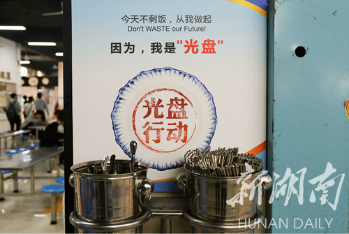 在校园的各个食堂里,“粒粒不易,不倒不弃”“光盘行动,从我做起”“杜绝浪费,爱惜粮食”等主题宣传满眼皆是。就餐过程中,还有由学生组成的民委会和监督检查员在食堂里引导同学们按需取餐、适量消费,劝阻餐饮浪费行为。