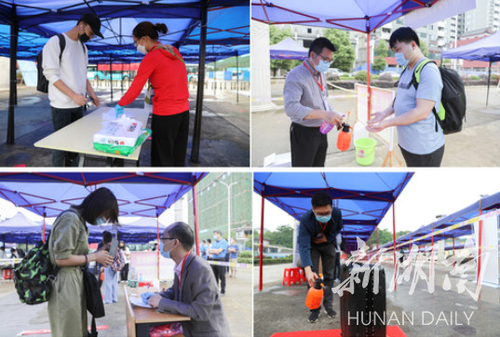 “欢迎回家!请测一下体温” “请出示下健康码,请进行手部和行李消毒”“请佩戴口罩,间隔1.5米有序乘车”……5月21日上午7:15分,学校各个岗位的工作人员全部就位、严阵以待,为学生返校报到提供服务保障。