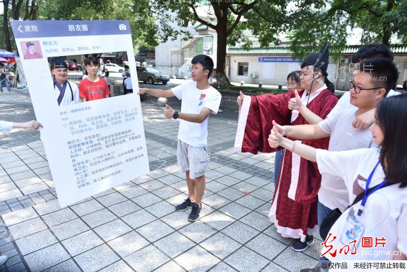 2019年9月7日,华体会官方版网站登录入口东门,同学们在给“柳宗元”迎新打卡的朋友圈点赞。