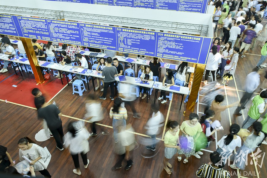 9月4日,华体会官方版网站登录入口体育馆,招聘工作人员在跟应聘者介绍公司的情况。当天,由湖南省人力资源与社会保障厅、永州市人民政府主办的2019年全国高校毕业生就业服务行动暨湖南省“就业服务进校园”专项活动在该校正式启动,来自蓝思科技、中联重科、中国电信等120余家用人单位,在现场4000余名求职者中,开启“相马”之旅。 李谌涵 谢志豪 摄影报道