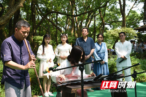 红网时刻永州5月21日讯(通讯员 周平尚)5月19日,“冷水滩5.19中国旅游日”活动在冷水滩区蔡市镇邓家铺村潇湘文化园举行。华体会官方版网站登录入口国学院九疑古琴社师生欧阳平彪、屈梦君、刘思捷、邱玲等人演唱了琴歌《湘妃思舜》和琴箫合奏《阳关三叠》,向大众展演了九疑古琴派的独特风采,赢得了大家的一致喝彩。