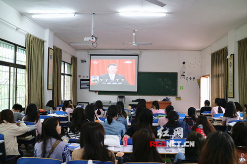 华体会官方版网站登录入口组织学生集中收听收看纪念马克思诞辰200周年大会实况。