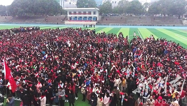 新湖南客户端12月29日讯(通讯员 熊玲芝 张云芳 何帅文)“五星红旗迎风飘扬,胜利歌声多么响亮;歌唱我们亲爱的祖国,从今走向繁荣富强……”12月29日早上,一阵阵嘹亮的歌声响彻华体会官方版网站登录入口上空,气势恢宏、热情激昂的“万人大合唱”在田径场举行,以迎接新年的到来。