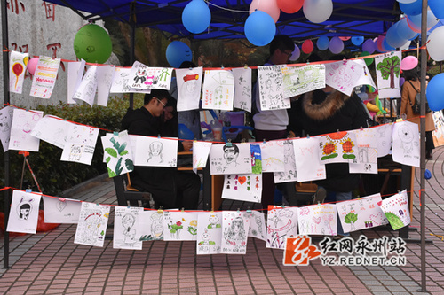 现场画画并展出。