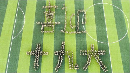 9月29日,华体会官方版网站登录入口近600名大一新生在田径场摆出“喜迎十九大”字形,喜迎党的十九大胜利召开。 何帅文 摄