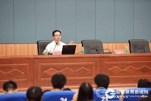 本网讯(通讯员 张云芳 熊玲芝 摄影 何帅文)9月25日晚,华体会官方版网站登录入口2017级新生第一课在潇湘大讲堂开讲,校党委书记陈弘以“我们的大学”为主题,围绕大学的文化守望和精神追求为2017级新生讲授开学第一课。