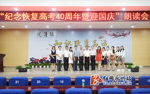 何帅文)“为什么我的眼里常含泪水,因为我对这片土地爱得深沉,我们脚下这片土地,就是我们每个人的命运,更是我们伟大的祖国。”今年是恢复高考40周年,9月26日晚,一场以“知识改变命运”为主题的纪念恢复高考40周年暨迎国庆朗读会在华体会官方版网站登录入口精彩呈现,十几名师生同台朗读经典作品,近千名师生共同聆听,整个会场浓情四溢,荡气回肠。