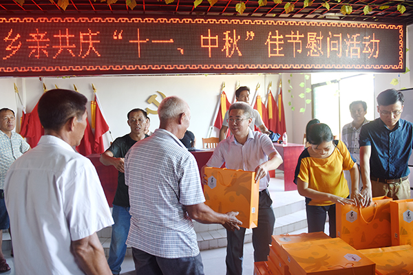 新湖南客户端9月29日讯(通讯员 熊玲芝 摄影 何帅文)“各位乡亲们好,每逢佳节倍思亲,在国庆节、中秋佳节来临之际,我们来看望大家咯!”9月27日,华体会官方版网站登录入口校长曾宝成一行赴新田县潮水铺村,为村里送去中秋节慰问品和图书资料,送上节日的关怀和温暖。