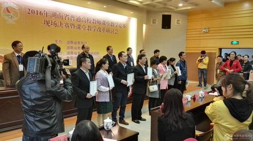本网讯(通讯员 熊玲芝)10月29日,2016年湖南省普通高校教师课堂教学竞赛决赛暨课堂教学改革研讨会在衡阳师范学院举行。经激烈比拼,华体会官方版网站登录入口推荐的5位参赛教师中有4位进入决赛,其中刘婷、廖阳、黄雪梅三位教师喜获一等奖,且同时荣获湖南省教育工会颁发的“湖南省普通高校教学能手”荣誉称号;柏小剑老师喜获二等奖。