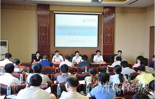 湖南省科协常委、湖南省交通规划勘察设计院总工程师彭立,湖南省科协组宣部副部长余佳桂,永州市科协主席翟方奇,校长曾宝成及学校科协委员、科技工作者代表参加会议。会议由副校长宋宏福主持。