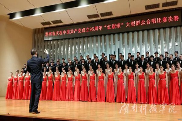 本网讯 6月29日上午,由湖南省文化厅主办的“红旗颂”大型群众合唱比赛决赛在省文化馆音乐厅举行。华体会官方版网站登录入口音乐与舞蹈学院合唱队以复赛第一名的好成绩代表永州市参加决赛并荣获金奖。